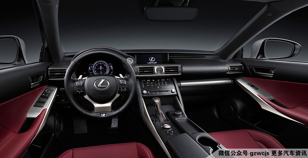 内饰还是延续老款的风格,以方正为主,而又在多个部位巧妙运用了圆形的设计,例如圆形的“机械+液晶”式仪表盘,这里的“机械”是指仪中央圆形仪表盘会根据车内的一些功能设置而进行物理移动,显示部分则是液晶面的,非常灵动的一个设计理念;还有启动键、钟表、旋压按钮都是以圆形为主;现在所有车型的中控,其实主流的是触屏操控或是触摸操控,而车型定位较高的雷克萨斯IS则依然是以物理按键操控为主,物理按键的好处在于用起来具有质感且很自然。