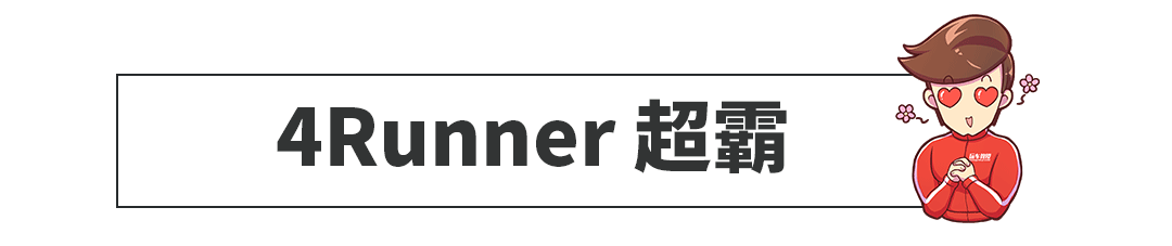 4Runner在国内被称为超霸,它是丰田在霸道LC150底盘基础上,根据北美地区人民喜好研制,专供北美市场的一款中大型越野车。它的外观内饰风格都更加美国化,而且除了作为一辆日常代步的工具车,4Runner还有TRD越野强化版本,因而多了一份玩具车的味道,而这样的设计往往是美帝人民最喜欢的。最近两年,4Runner也被平行进口到国内,大有成为销量黑马之势。